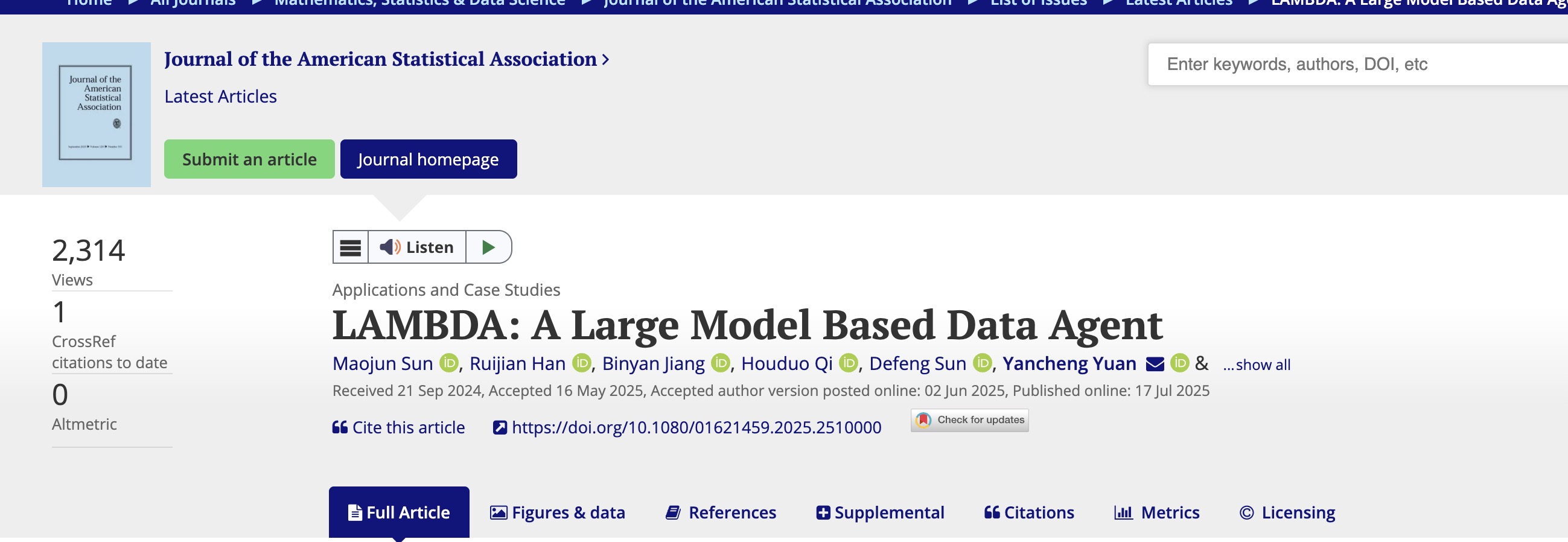 Call proposal for JASA special issue on AI